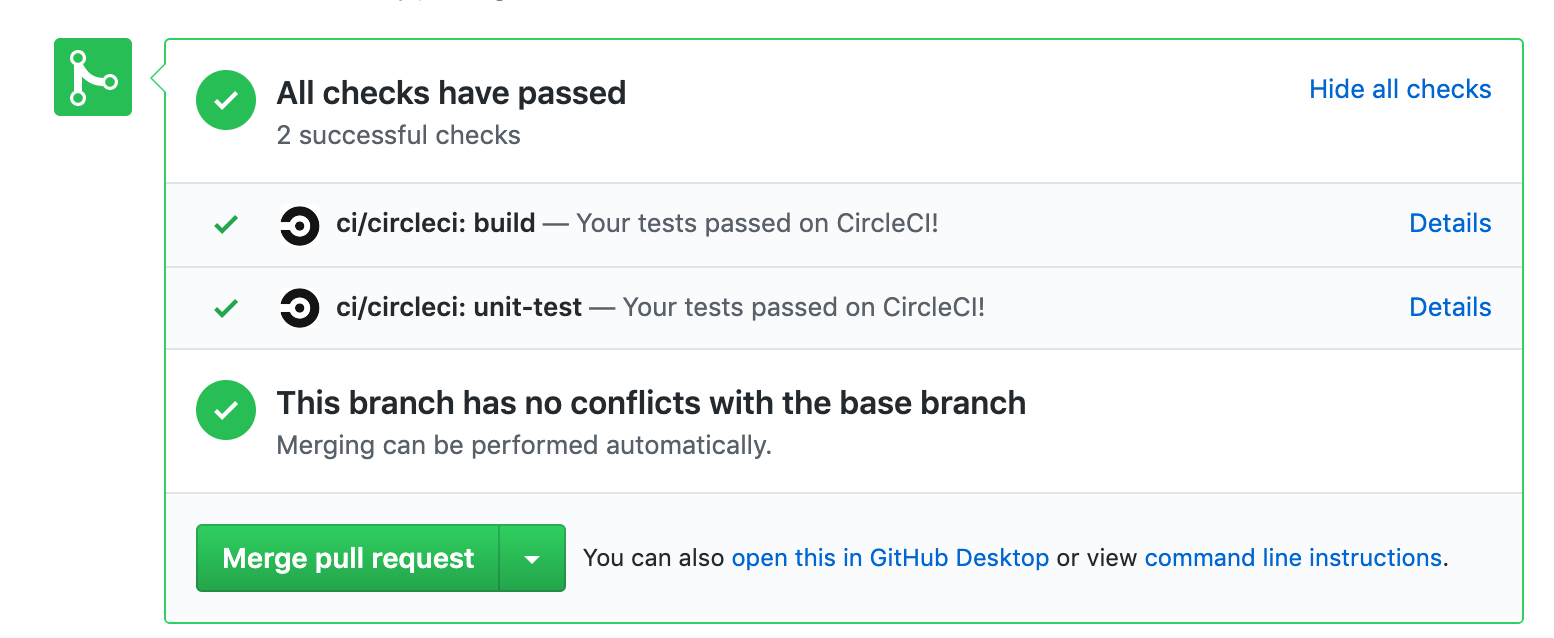 Once again, we open a pull request with our changes, and watch CircleCI run our tests.